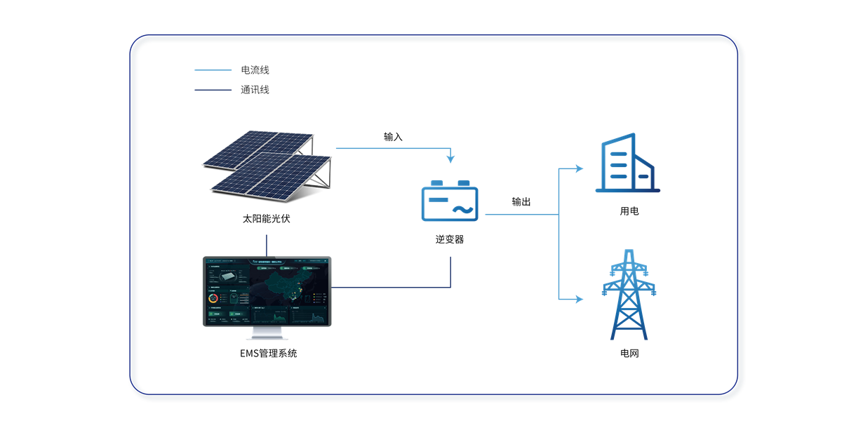 屋頂光伏電站由光伏發(fā)電系統(tǒng)、逆變系統(tǒng)和并網(wǎng)接入系統(tǒng)組成,包含光伏電池組件、支架、直流匯流箱、配電柜、并網(wǎng)逆變器、交流配電柜、監(jiān)控和環(huán)境監(jiān)測等設(shè)備。其運(yùn)行模式是在有太陽輻射條件下,太陽能組件陣列輸出電能,經(jīng)直流匯流箱集中送入直流配電柜,由并網(wǎng)逆變器逆變成交流電供給建筑負(fù)載,多余或不足的電力通過聯(lián)接電網(wǎng)來調(diào)節(jié)。