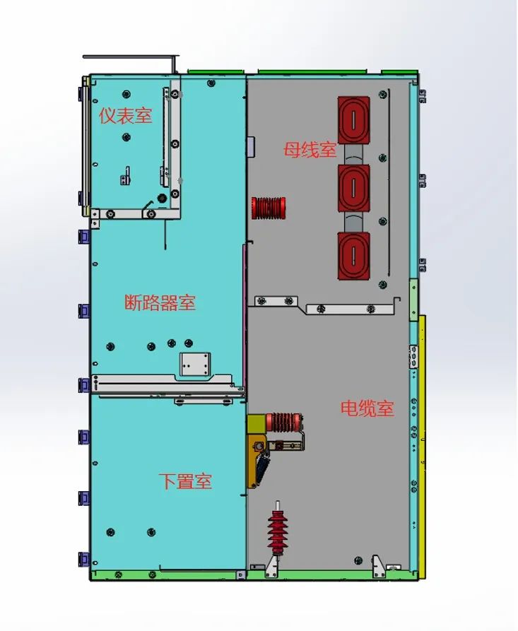 采用金屬間隔設計,母線室、斷路器室、電纜室、儀表室相互分隔,各高壓室均設計有泄壓通道,保障用戶人身安全;
