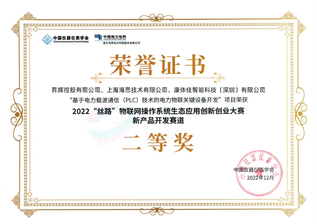 昇輝控股于近期先后斬獲多項榮譽(yù):在華為廣東政企合作伙伴大會上,獲頒“新銳合作伙伴獎”;在由中國儀器儀表學(xué)會、中國南方電網(wǎng)主辦的“絲路”物聯(lián)網(wǎng)操作系統(tǒng)生態(tài)應(yīng)用創(chuàng)新創(chuàng)業(yè)大賽上,以“基于電力載波通信(PLC)技術(shù)的電力物聯(lián)關(guān)鍵設(shè)備開發(fā)”項目榮獲大賽新產(chǎn)品開發(fā)賽道二等獎。這些榮譽(yù)的背后,代表客戶和行業(yè)對昇輝控股的技術(shù)實力和專業(yè)服務(wù)的肯定,也是企業(yè)對技術(shù)、品質(zhì)和服務(wù)追求的價值體現(xiàn)。