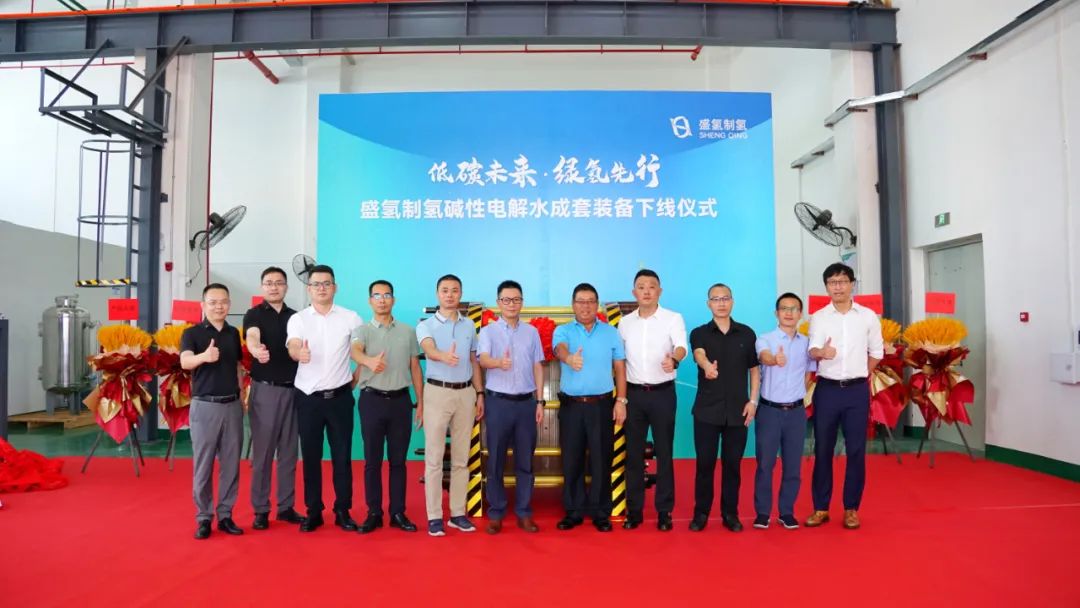 8月22日,以“低碳未來 綠氫先行”為主題的盛氫制氫堿性電解水成套裝備下線儀式在盛氫制氫設(shè)備公司舉行。佛山市南海區(qū)發(fā)改局總經(jīng)濟師梁柱榮、佛山市高新區(qū)南海園副局長何俊麒、南海區(qū)里水鎮(zhèn)黨委委員周可、廣東省燃料電池汽車示范城市群領(lǐng)導(dǎo)小組工作專班、佛山市環(huán)境與能源院院長趙吉詩博士、鴻基創(chuàng)能有限公司董事總經(jīng)理鄒渝泉博士、國富氫能戰(zhàn)略總監(jiān)魏蔚博士、中氫綠源董事長王德新,以及昇輝科技董事長李昭強、昇輝新能源董事長張毅、昇輝控股副總裁文真、盛氫制氫總經(jīng)理吳瑾等領(lǐng)導(dǎo)嘉賓出席下線儀式,現(xiàn)場還有合作伙伴、媒體等40人參加活動。