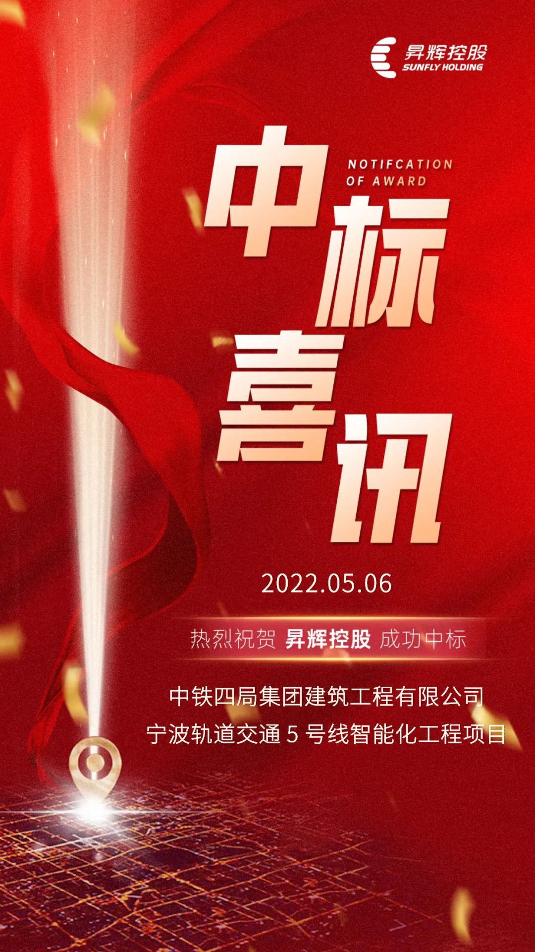 5月6日,從浙江寧波市傳來捷報,昇輝控股有限公司(下稱“昇輝控股”)收到“寧波市軌道交通 5 號線智能化工程項目”的中標通知書。