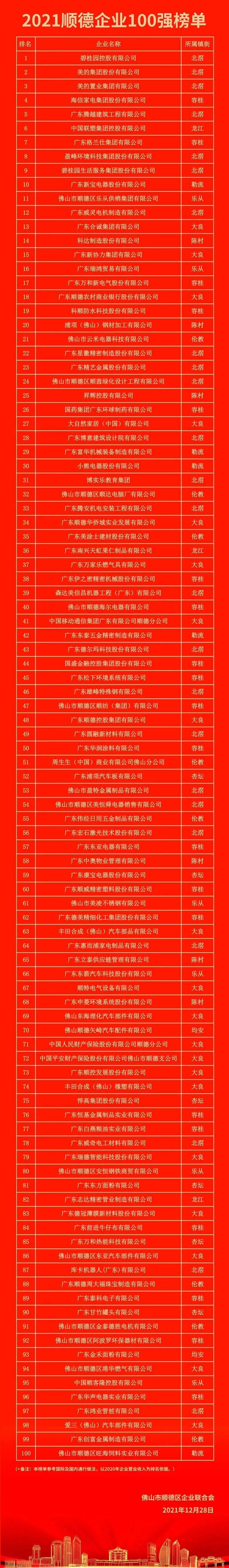 本次由佛山市順德區(qū)企業(yè)聯(lián)合會、佛山市順德區(qū)企業(yè)家協(xié)會編制發(fā)布的《2021順德企業(yè)100強發(fā)展報告》(下文簡稱“《報告》”),參照世界500強、中國企業(yè)500強等權威榜單的排名方式及標準,以2020年企業(yè)營業(yè)收入作為企業(yè)入選和排名的主要依據(jù)。